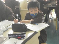 子どもたちは実験の結果を真剣にワークブックに記録していました。