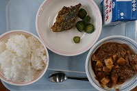 ご飯 牛乳 春野菜入り麻婆豆腐 鰆(さわら)の磯辺(いそべ)揚げ 胡瓜(きゅうり)の塩麴(しおこうじ)漬け