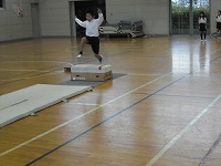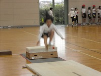 跳び箱の一段目を跳び越しながら高く踏み切ることを意識して練習していました。