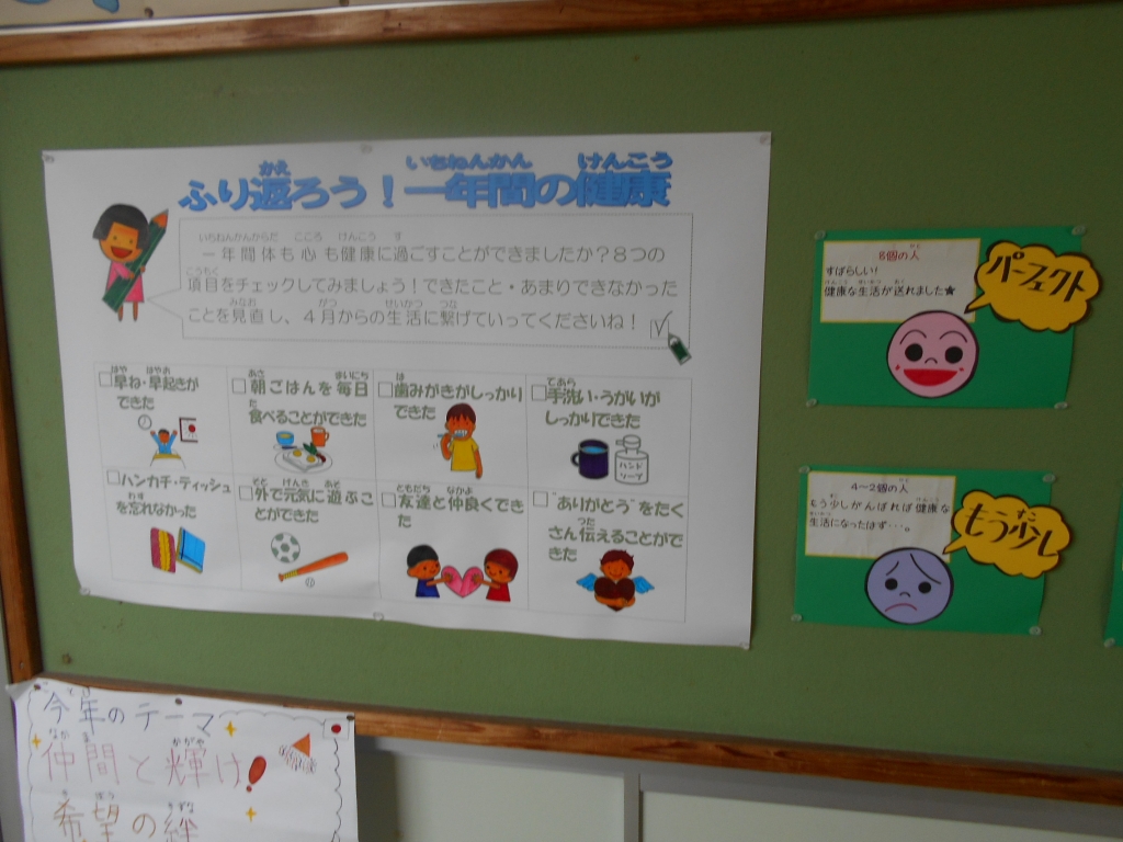 今年度も残り少なくなりました。保健室前には、1年を振り返るための掲示がしてあります。