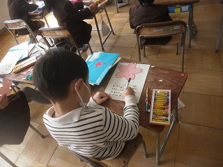 1年生は、新年度の1年生へ向けての学校紹介を作っていました。自分たちも約1年前に見たものですので、それを思い出して、新入生に喜んでもらおうと文章を考えます。