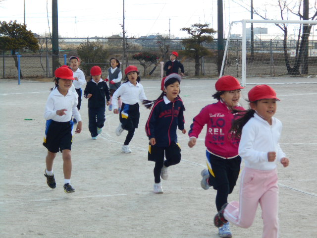 いよいよ明日は完走大会です。1年生は、体育の時間も運動場を7周走って練習しました。