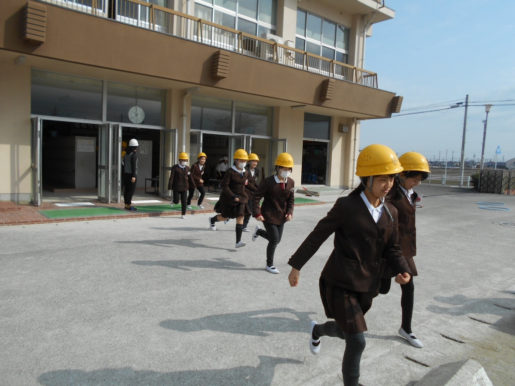 休み時間に予告なしの避難訓練を行いました。比較的静かに素早く避難できました。