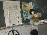 5年生が理科で、電流計について学習していました。電磁石に流す電流の大きさによって、磁力がどう変わるか調べます。電流計に線をつなぐ端子によって、目盛りの単位が変わってきます。線をつなぐ端子と電流計の目盛りの単位の相関に注意することを確認していました。
