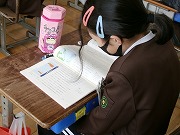 4年生が国語の長文読解をしていました。鰻(うなぎ)の生体の秘密についての説明文の朗読CDをきいて、重要なところをチェックしながら聞きました。