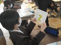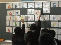 4年生が英語でアルファベットの小文字を学習していました。フラッシュカードで出すたびに、子どもたちから読み上げる声が上がり、中には次の文字を予測して発言する子もいました。