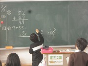 3年生が算数で小数の足し算や引き算の筆算に取り組んでいました。