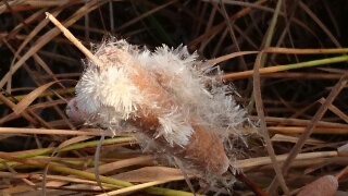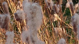 金曜日に、2年生がビオトープのがまの穂で遊んだという記事を載せましたが、がまの穂自体も秋から冬に季節が進み綿毛がとても多くなっています。