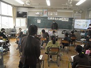 4年生が外国語で、日常の行動について何時にするかという言い方を学習していました。例えば、