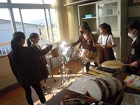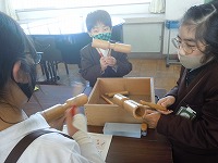 4年生がいろいろなリズム楽器に取り組んでいました。木でできているもの、金属でできているもの、皮でできているものなどで分類して挑戦していました。たたく強さやその変化について図を示して理解しやすく工夫していました。