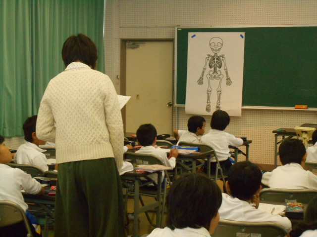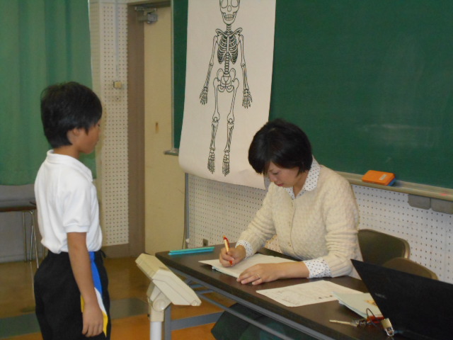 1年生は、体重測定をしました。保健の先生と姿勢や骨の働きの勉強もしました。
