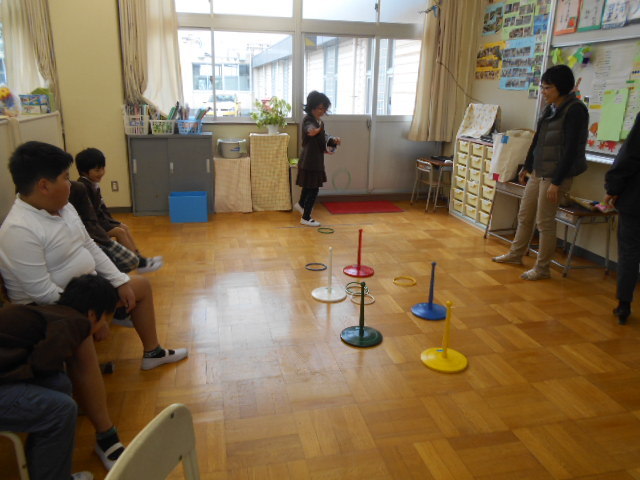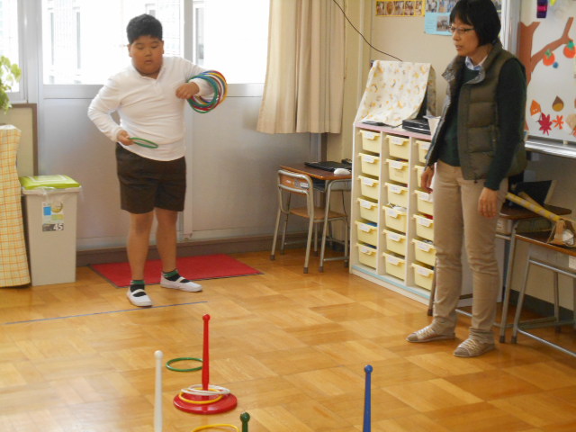 ひまわりの教室では、わなげをしました。30秒で何点とれるか、遊びながら計算をしていました。