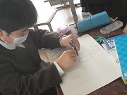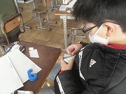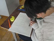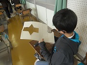 下の写真はまるで図工の時間かと思ってしまいますが、実は5年生の算数です。立体の展開図の学習で、方眼紙に自分で展開図を描いて、本当に考えた通りの立体になるか組み立ててみました。