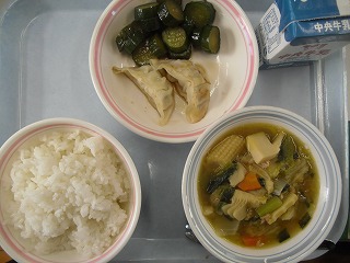 ご飯 牛乳 八宝菜 餃子 きゅうりの香り和え