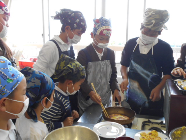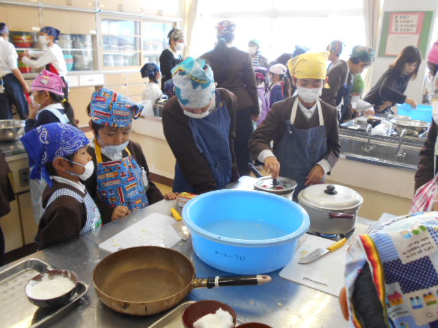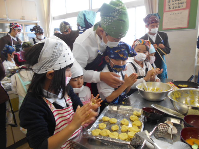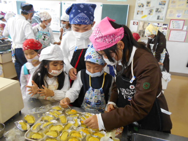 1年生と6年生が、一緒に「さつまいももち」と「スィートポテト」を作りました。