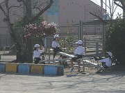 そして、子どもたちは、ジョギングをした後で残りの時間を惜しむかのようにそれぞれ運動場や遊具を使って遊んでいます。少し涼しくなってきた気候がちょうどよいくらい元気いっぱいです。
