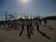 業間ジョギングの時は最初に全員で準備運動をして、けがの予防をします。