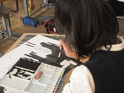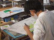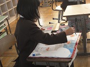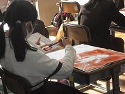 4年生が、先日から取り組んでいる読書感想画の色塗りを始めました。