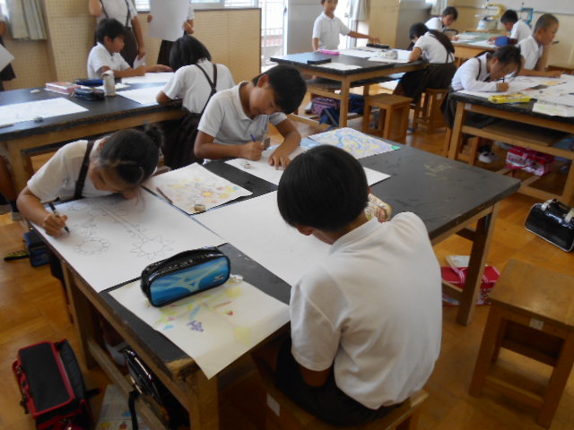4年生は、作品展の作品作りの続きをしました。まぼろしの花の種を粘土で作り、素敵な花を描きます。