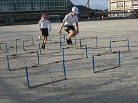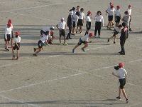 今日は月に1回のクラブ活動の日ですが、体育館の中は土曜日の作品展・授業参観に向けて作品展示が行われているため使うことができません。そのため、通常の屋外運動クラブとともに、バスケットボールクラブも屋内運動クラブもともに運動場で活動しました。同時にいくつもの競技ができないので、どのクラブも、体力づくりを行いました。