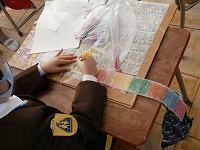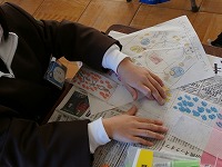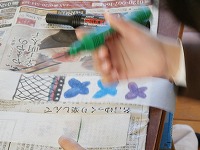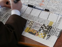 集中しすぎて、手にインクが付いて汚れたことにあとから気づく子もいました。