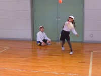 2年生の野球ゲームはグループごとの練習が進んでいます。投げる人と打つ人、守る人を交代しながら何度も練習しています。