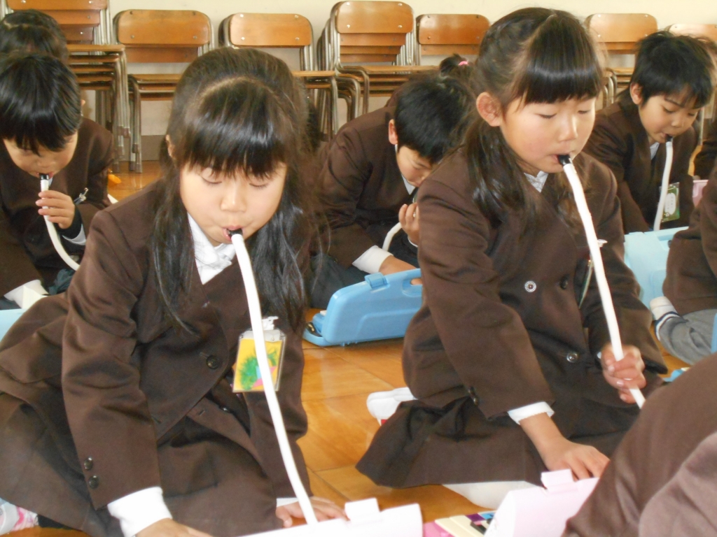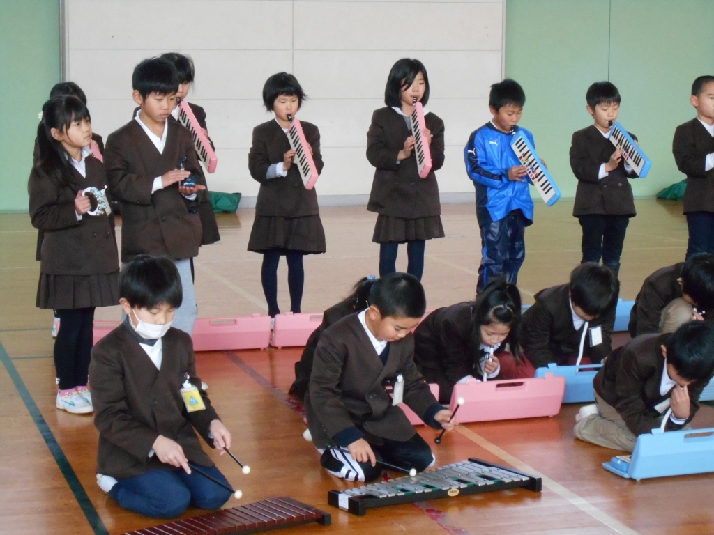 1・2年生は、明日の佐織特別支援学校との交流会の練習をしました。1年生は、きらきらぼしの鍵盤ハーモニカの演奏を、2年生は、こぐまの2月の歌と器楽合奏を披露します。