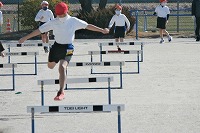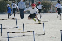 3年生が体育で取り組んでいるハードルですが、練習を重ねて以前よりも速いスピードで走りながら跳べる子が増えているようです。足をできるだけまっすぐ前にふりあげて、上体はできるだけ前に倒し、重心が上下しないように走るのがコツです。