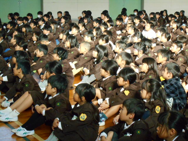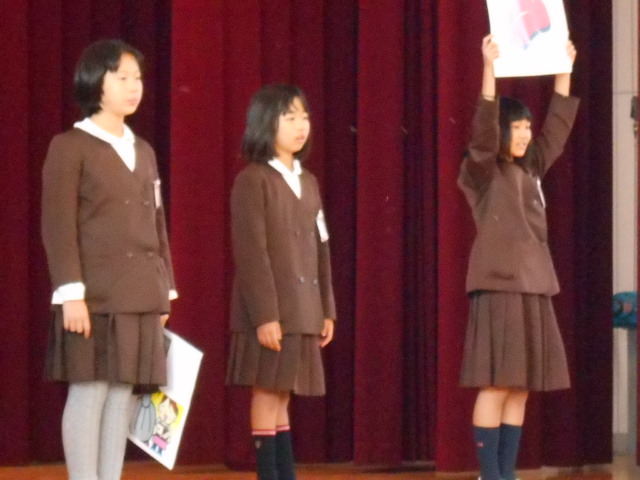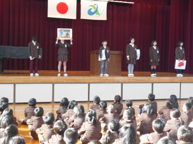 集会では、赤い羽根募金について、児童会役員からの話がありました。みんな真剣に聞いていました。