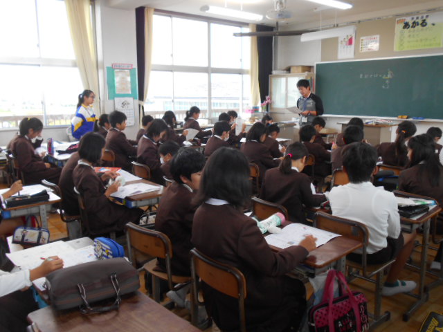 佐織西中の生徒が職場体験をしにきました。今日は、4・5・6年の教室で一緒に勉強しました。