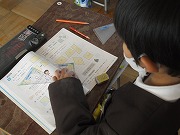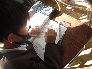 2年生が算数で図形の学習をしていました。正方形や長方形について、どんな特徴があるか、ものさしで長さを測ったり、三角定規で角を測ったりしていました。