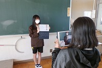 5年生が英語で、自分のヒーローや憧れの存在について英語で話し、タブレットを使ってお互いに撮影していました。これを先生に提出し、先生からのメッセージをもらいます。文章や発音、表情やジェスチャーなどいろいろなポイントに気をつけて話します。