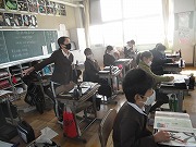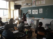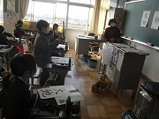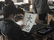 4年生が書写で「大地」という字に挑戦していました。最初に、字の特徴や、書くときに気をつけることを発表しあいました。