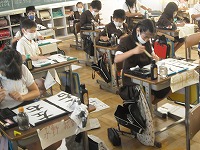 4年生が書写で「左」「右」の字を学習していました。左という字は一画目が「横画」で、右という字は一画目が「左はらい」という違いがあります。似ている字なのに書き順が違うので戸惑う人も多いのだと思います。