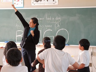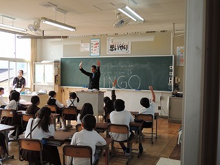 ALT(英語指導助手)の先生による英語の授業は5,6年が中心ですが、英語に親しむために他の学年も少しずつ行います。今日の3年生は、「BINGO」という英語の歌を歌っていました。
