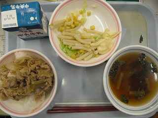 ご飯 牛乳 豚肉の生姜炒め マカロニサラダ 吉野汁