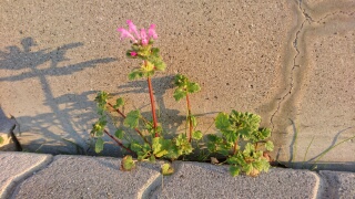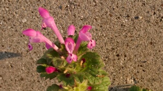 寒くなってくるとあまり花も咲きません。でも、普通だったら春に咲く花がこの12月に咲いていました。たまたま太陽の光がよく当たり、熱を蓄えるコンクリートに囲まれているので、暖かい春だと勘違いしたのかもしれませんね。