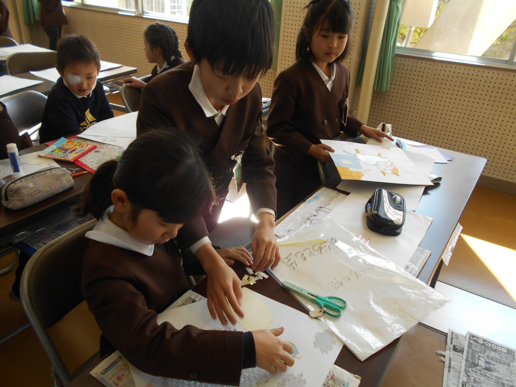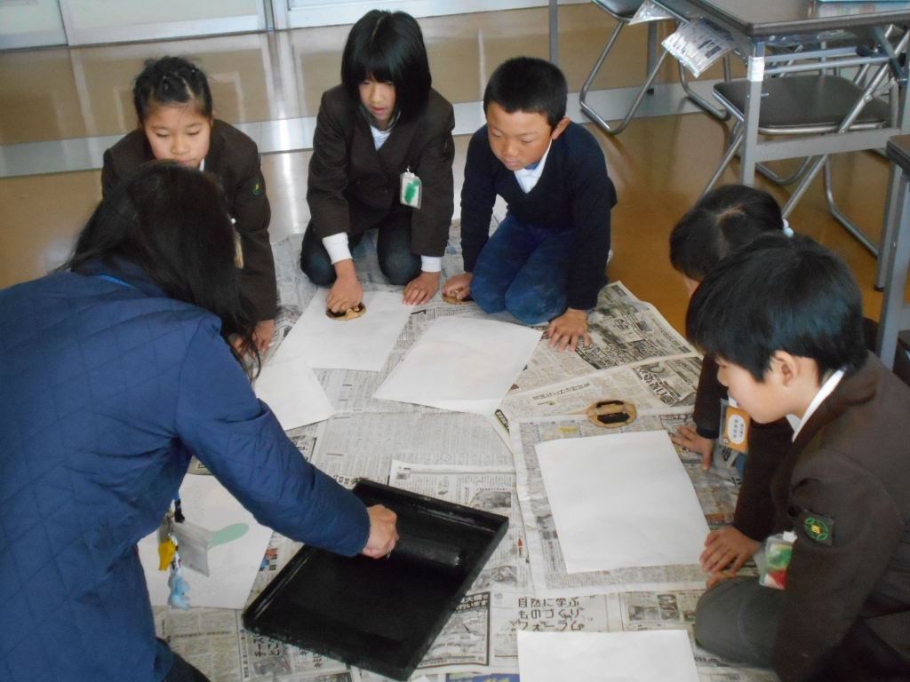 3年生は、紙版画の版が出来上がったので、版画を完成させます。