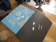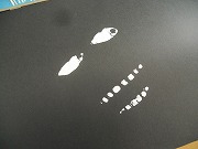 次の写真でわかりますね。白目の部分と歯の部分だけ白い絵の具をつけて黒い紙に刷ったので、上の写真になったのです。