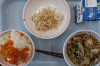 ご飯 牛乳 人参シラスふりかけ すき焼き風煮 こんこんサラダ