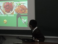 6年生が英語で、おすすめの国について自分で作ったスライドを使って発表していました。その国で有名な観光地や食べ物、土産物などを自分で調べてスライドに貼りつけ、英語の文章も書いて堂々と発表していました。