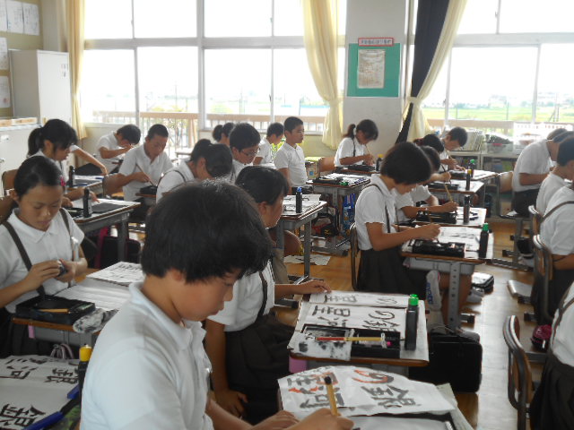 各学年、書写コンクールに出品するための作品の練習や清書を行っています。精神を集中させ、真剣に取り組んでいます。