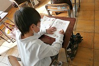 1年生が算数の大きな数について復習していました。ただの足し算引き算だけではなく、1つおきの並び(1,3,5・・・や2,4,6・・・)5つおき(5,10,15・・・)などを、最初からではなく途中から数えたり、数の並びの途中の穴埋めをしたりと、いろいろな数え方ができるか確認していました。