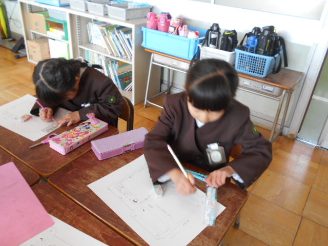 1年生は、来年度入学する1年生にプレゼントする朝顔の種を入れるための袋を作ります。