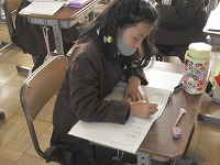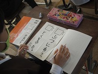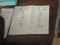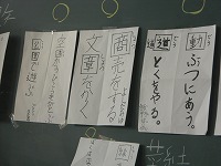 3年生が国語で、漢字の問題作りをしました。読み方が同じでも違う漢字をえらび、紙に大きく書いて、みんながお互いに問題を出し合いました。