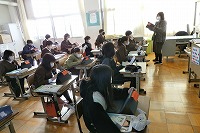 5年生が理科で生命の誕生について調べ学習をしていました。自分が生まれた時のことについて調べ、生命や赤ちゃんの事で調べたいことを自分で作り、実際に調べたことをタブレットにまとめます。