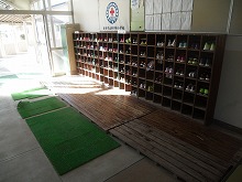 現在、児童の昇降口を大きく2つに分けています。もちろんコロナウイルス感染症対策です。