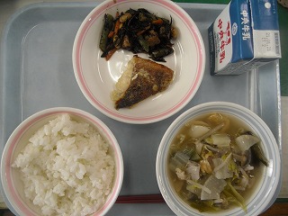 ご飯 牛乳 メバルの味噌ネーズ焼き ひじきの炒め煮 美酒鍋