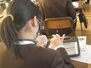 出したい問題について、タブレットを使って詳しく調べたり、画像を探してヒントにしたり、友達と相談しながらクイズを考えていました。