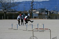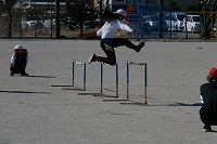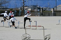4年生が体育で取り組んでいるハードルは、3つの高さに分けてコースを作り、自分で選んで挑戦しています。もちろんタブレットで記録を取って自分の変化も確かめます。